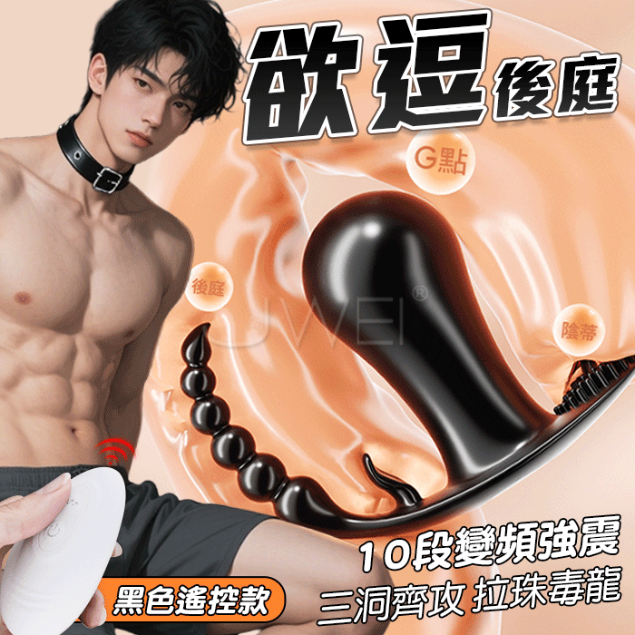 欲逗.10段變頻強震 三洞齊攻拉珠毒龍舌舔撩撥後庭按摩器【黑色遙控款】