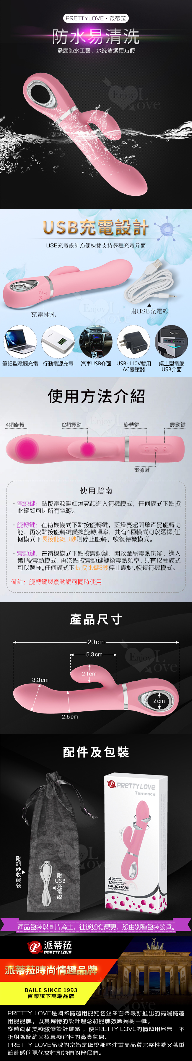 派蒂菈‧蜜妮 多重體驗棒﹝4頻旋轉+12頻強震+轉珠按摩+記憶功能+親膚硅膠+防水+充電﹞