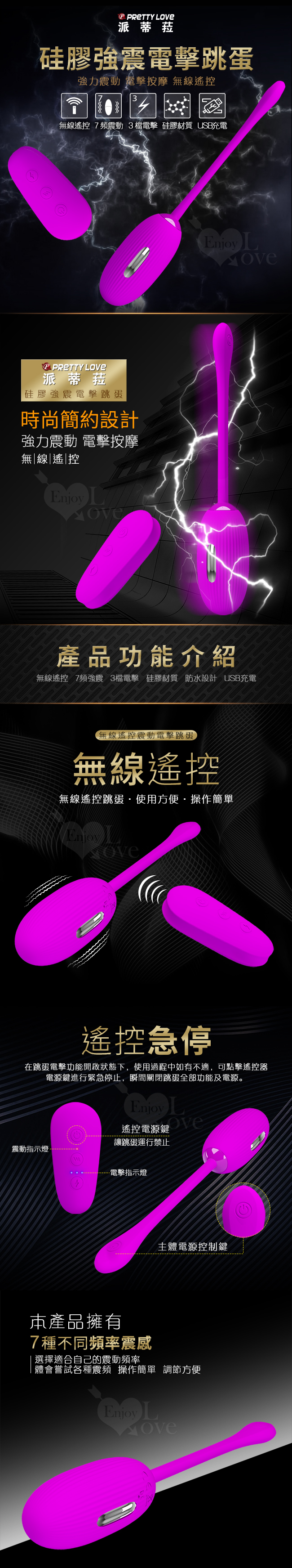 派蒂菈‧Shock fun 電擊跳蛋﹝無線遙控+7頻強震+3檔電擊+親膚硅膠+防水+充電﹞