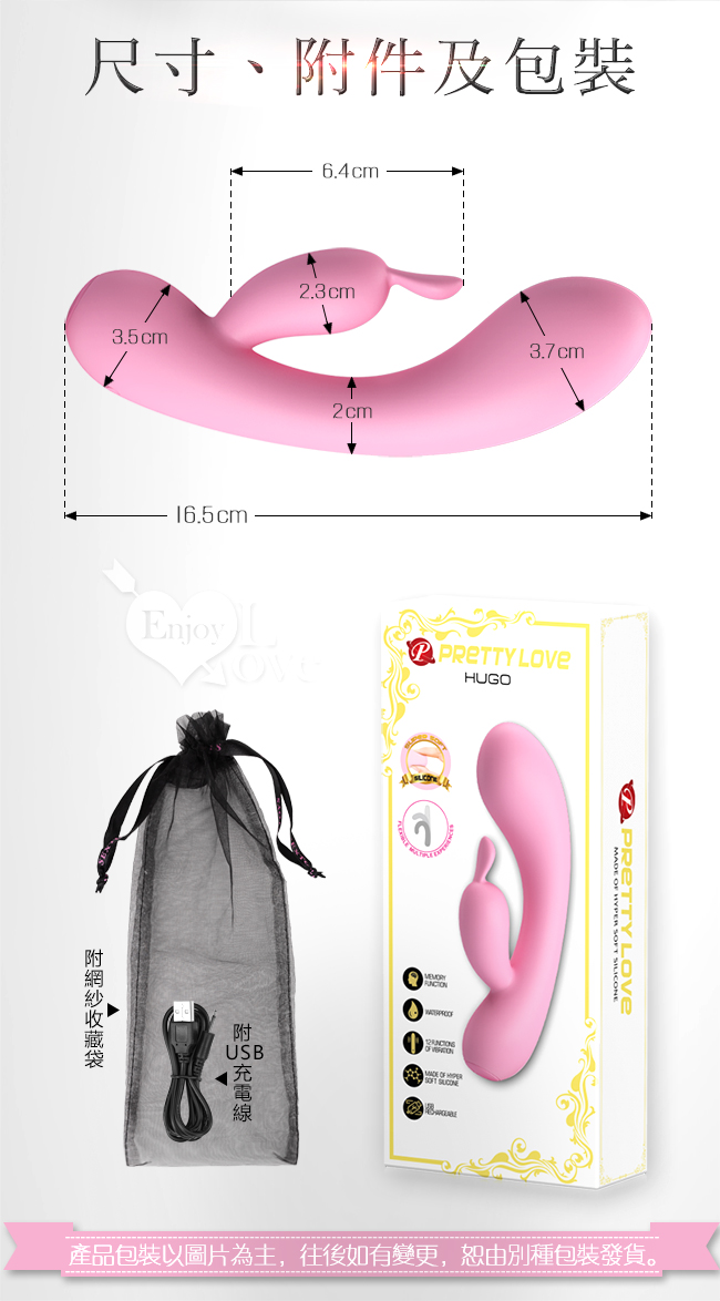 派蒂菈 ‧ HUGO 雨果 無骨柔軟優雅時尚雙馬達按摩棒﹝親膚質+12頻強震+靜音+快捷充電﹞