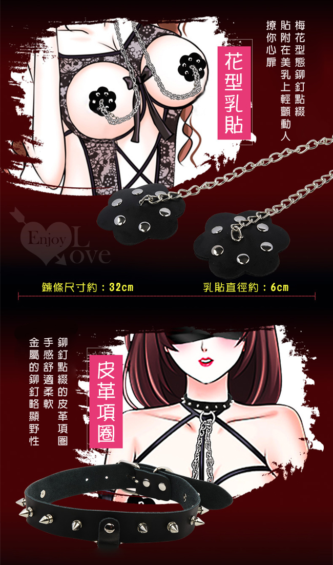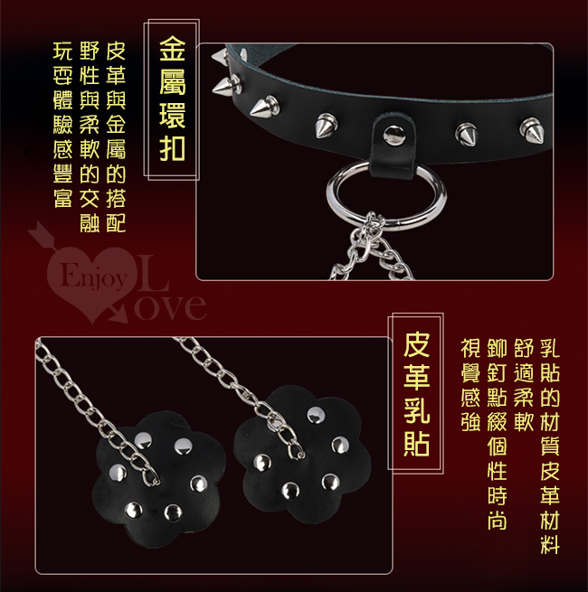SEX TOYS 鉚釘狗奴脖套帶鏈條乳貼-花樣玩法另類激情