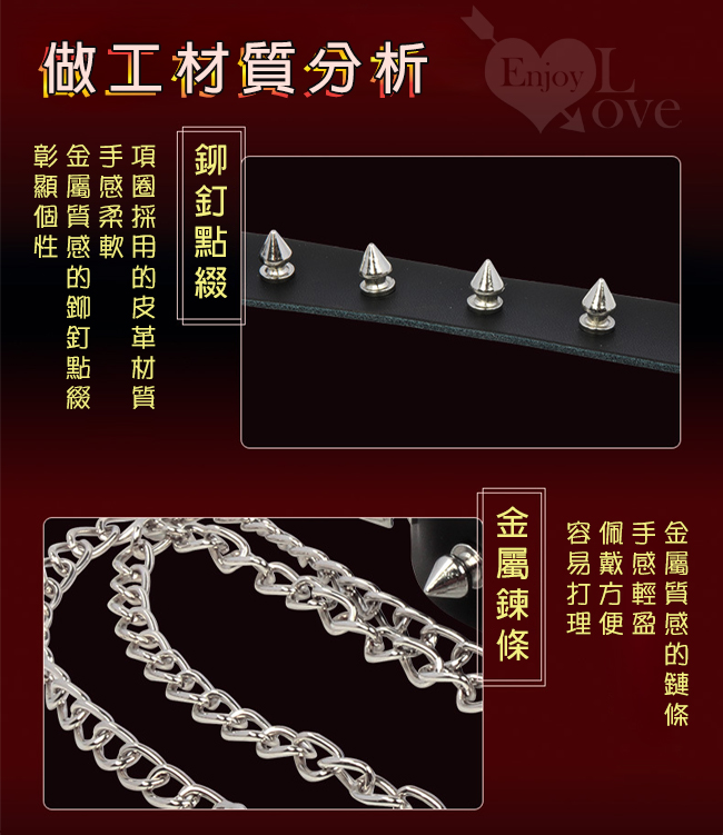 【內容】情趣鉚釘項圈帶鏈條乳貼(不含人物圖片上別的配件)。
