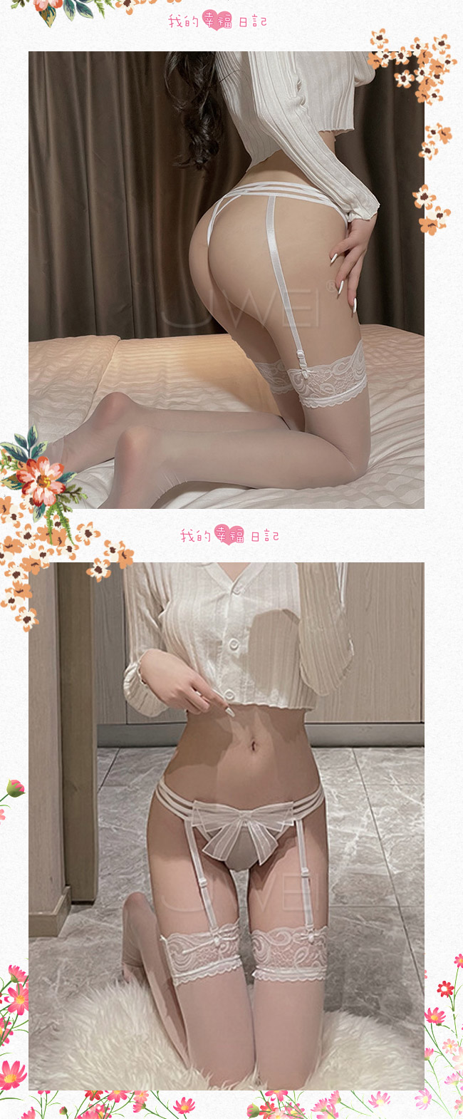 ◇◆柳腰花態.性感蝴蝶結顯瘦誘惑吊襪帶+大腿蕾絲絲襪(白)◆◇