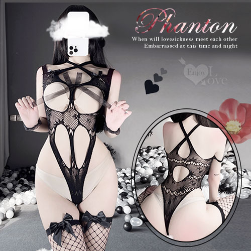 極性貓裝!交叉美脖激情爆乳高腰連身網衣三件組-含網襪