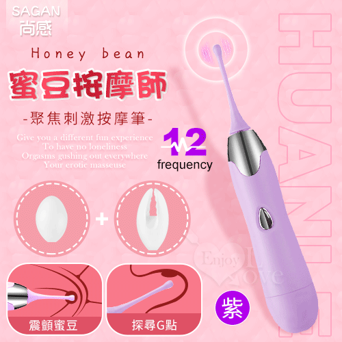 SAGAN 尚感 ‧ Honey bean 蜜豆按摩師 12頻震聚焦刺激按摩筆 - 配2款頭套﹝紫﹞