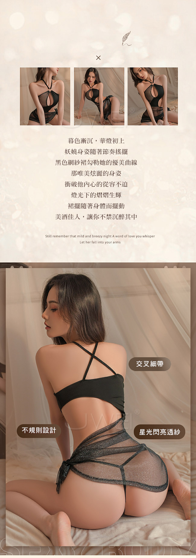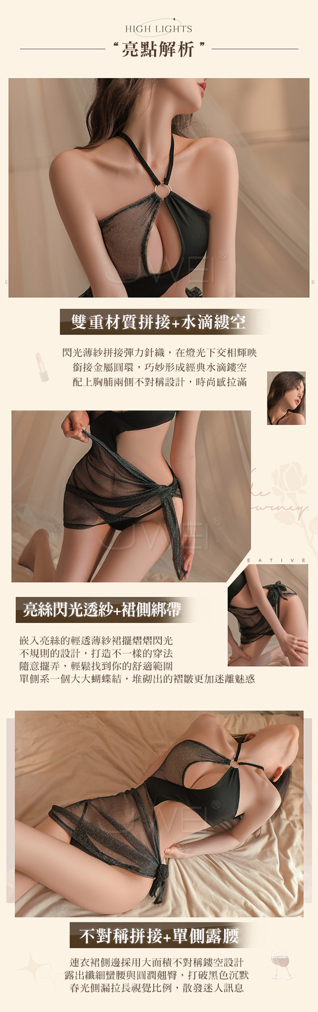 縱享迷情夜.心機鏤空亮絲閃光透紗不規格風情連衣裙套裝2件組