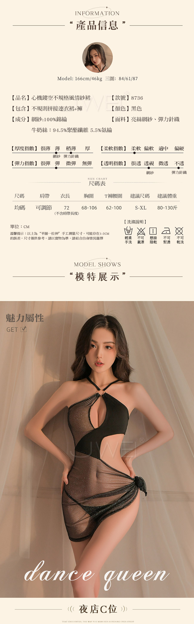 ►您現在的位置:首頁>縱享迷情夜.心機鏤空亮絲閃光透紗不規格風情連衣裙套裝2件組
