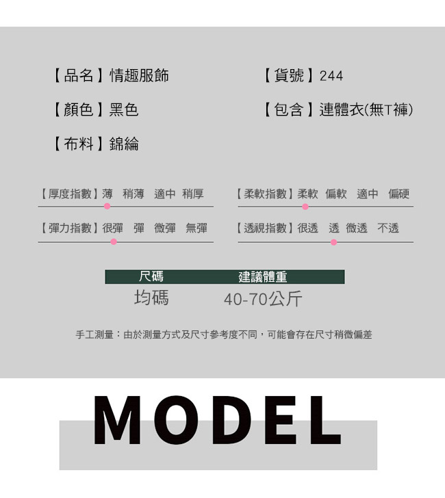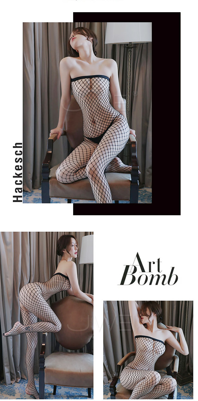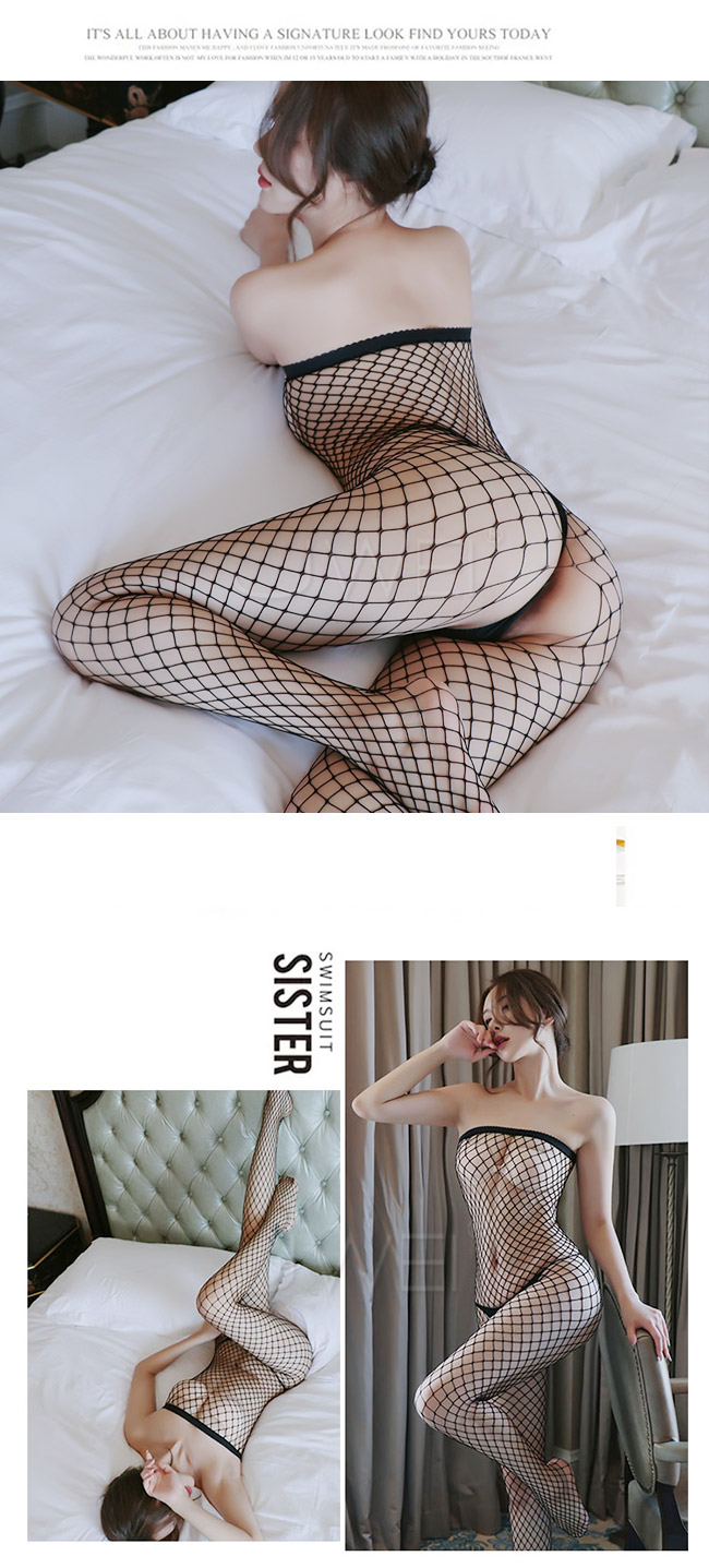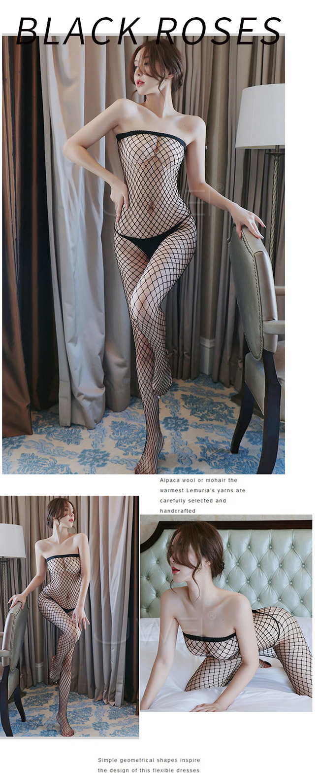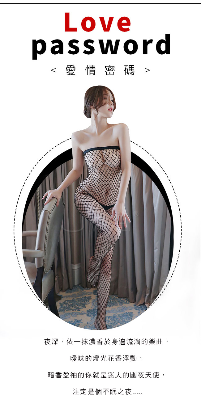 ►您現在的位置:首頁>愛情密碼.平口肩性感鏤空菱格紋開襠連身貓裝