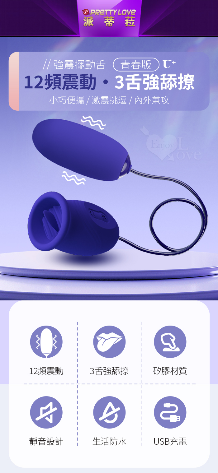 派蒂菈 ‧ Daisy 強震擺動舌 青春版U+ 高潮套裝組﹝3舌強舔撩+12強震+同時按摩+親膚硅膠+USB便捷充電﹞