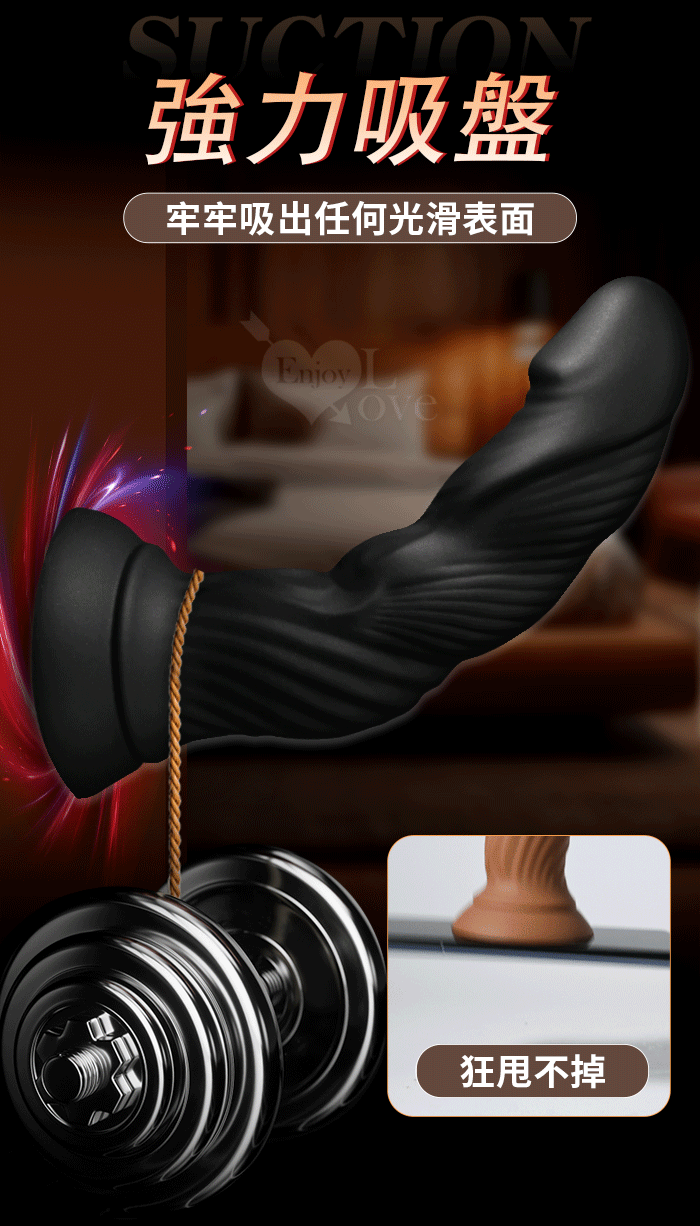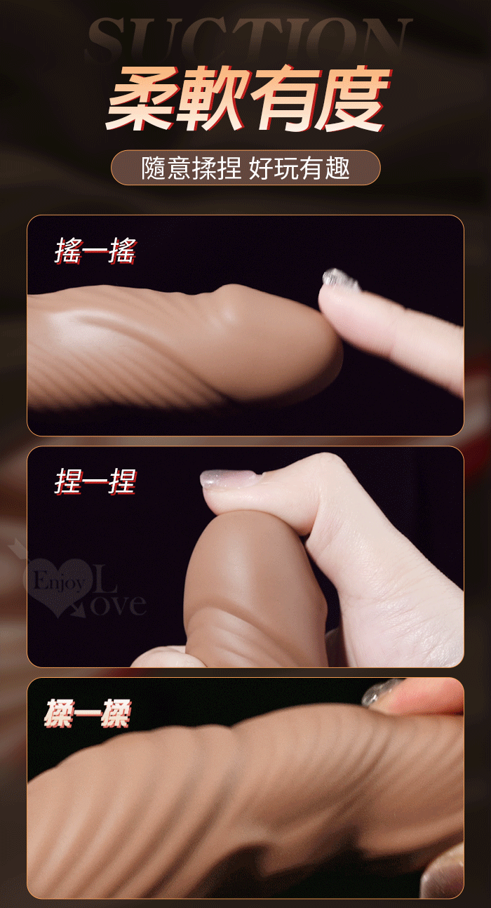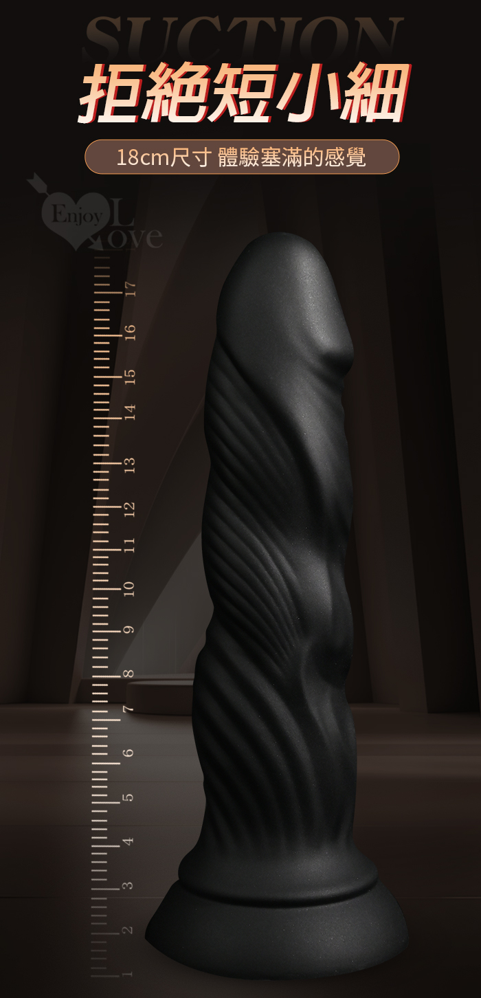Enjoy Love ‧ 真肉感A 龍麟紋波浪 7吋液態矽膠軟Q肉彈加固吸盤老二棒﹝黝黑﹞任揉任彎 永不變形