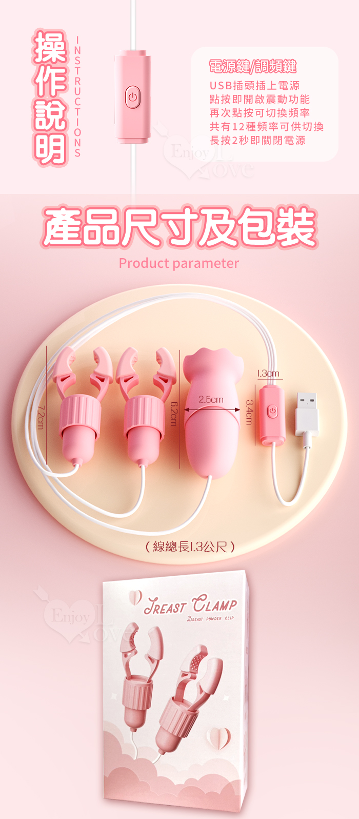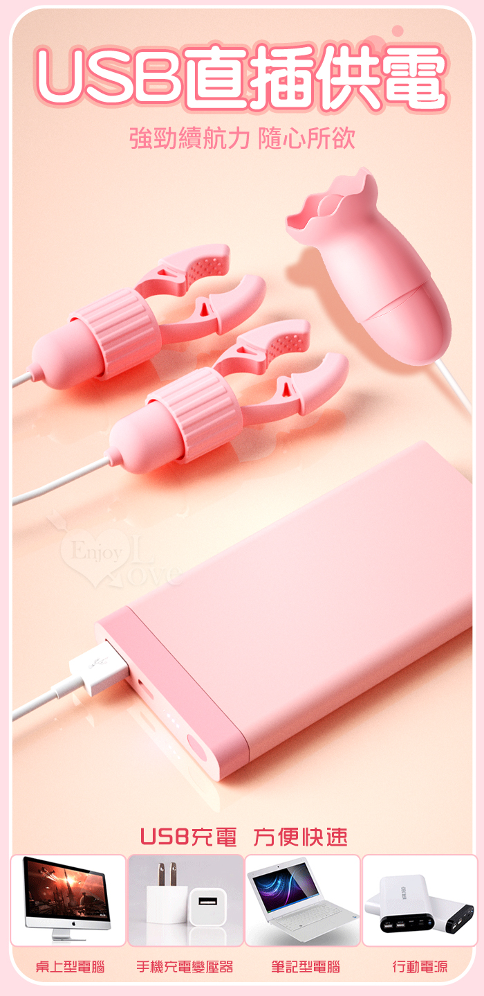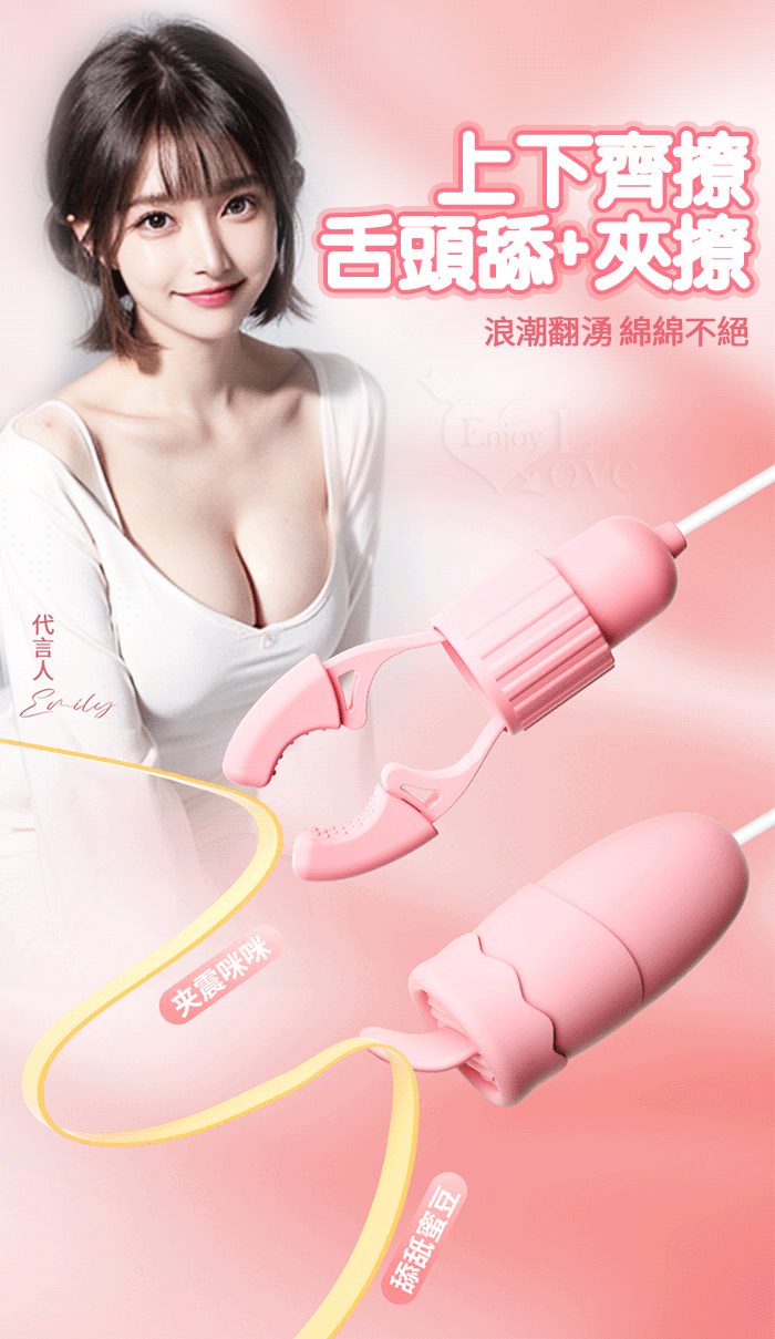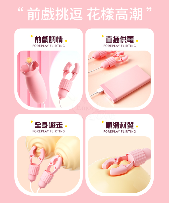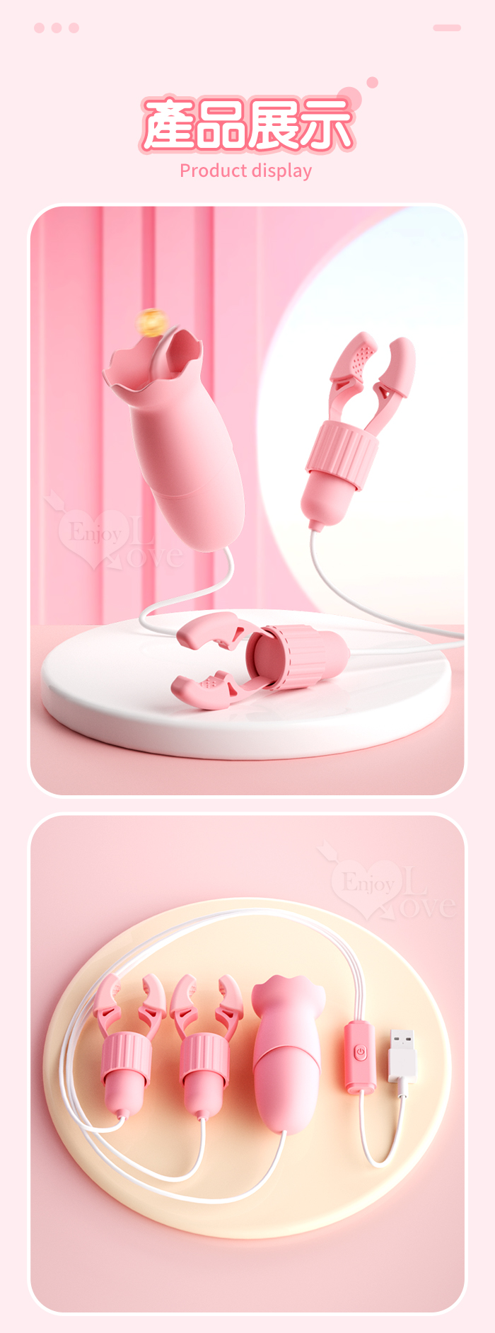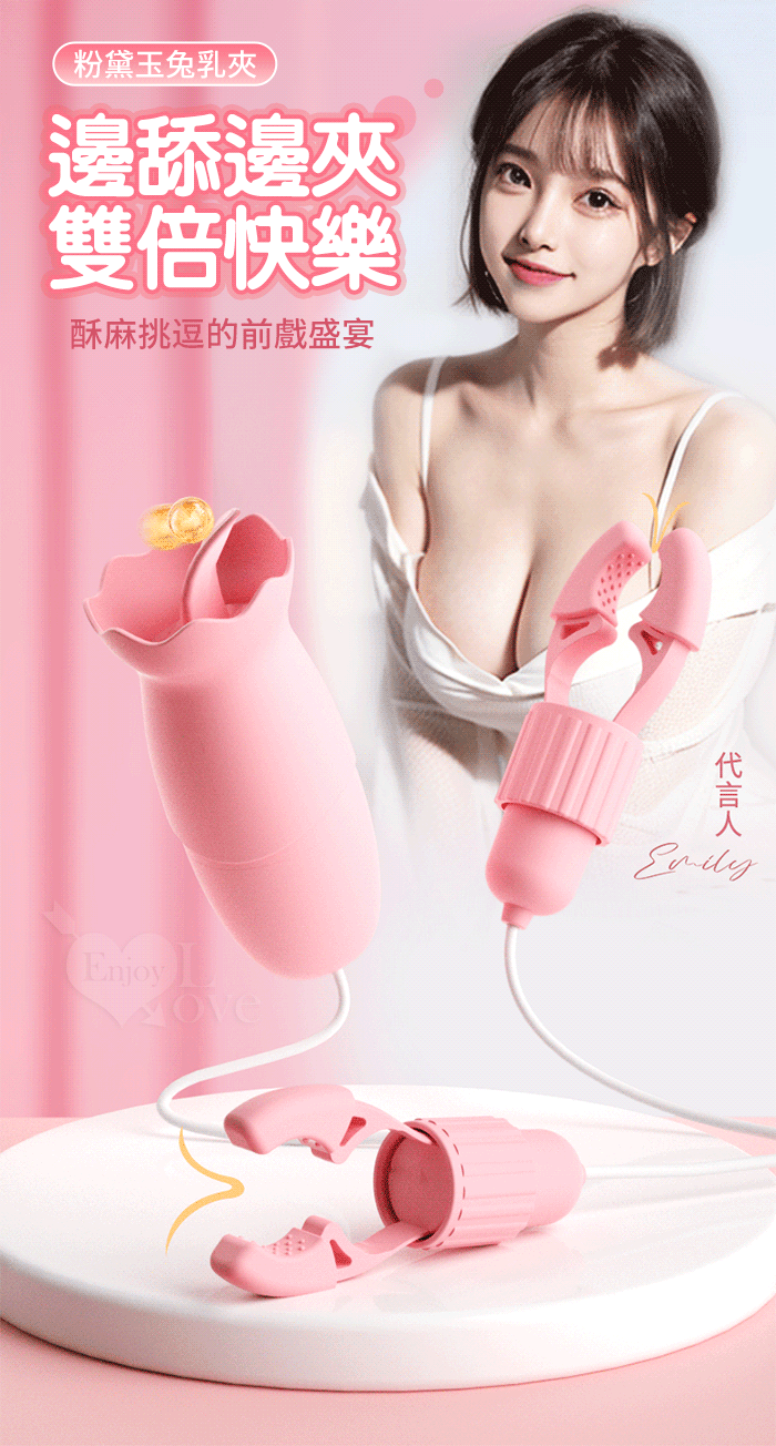 LILO 來樂 ‧ 粉黛玉兔 舌舔夾撩 12頻雙震動乳夾+撩震觸擊雙組合挑逗器 - USB直插供電