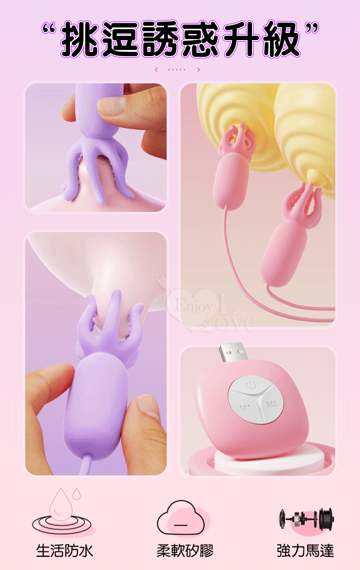 ROSELEX 勞樂斯 ‧ 章魚咪咪爪~雙乳按摩情趣挑逗乳頭夾~紫色﹝10變頻震動+雙邊可獨立控制﹞