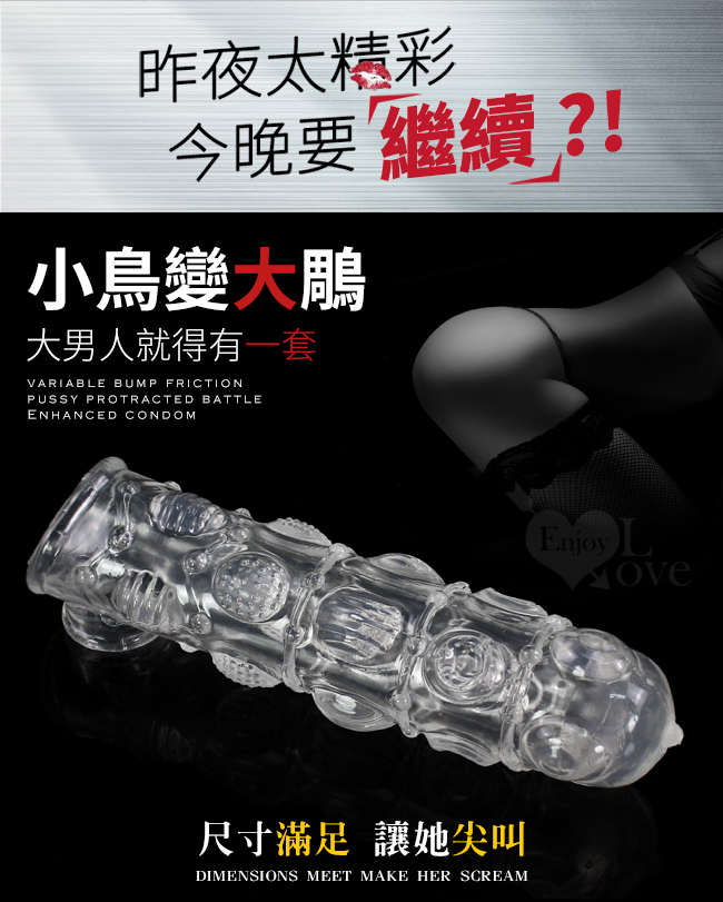 異變 ‧ 造形給力 持久作戰加強陽具套﹝增粗加長刺激﹞黑色