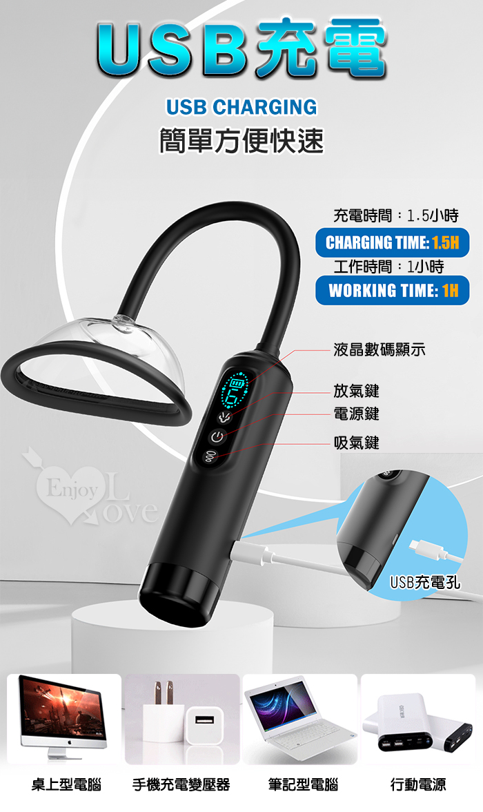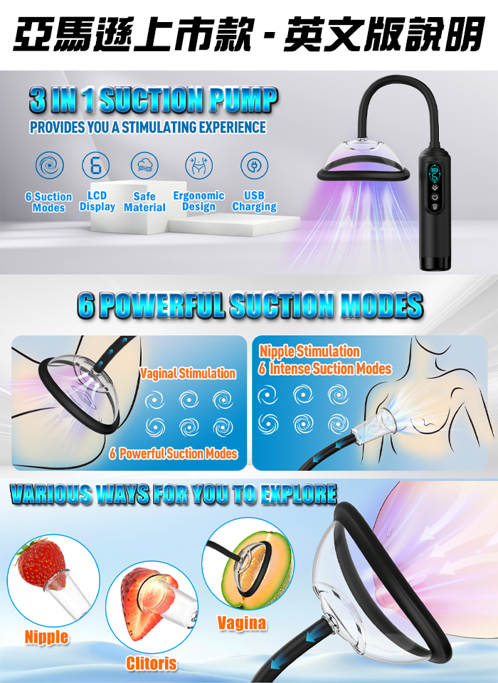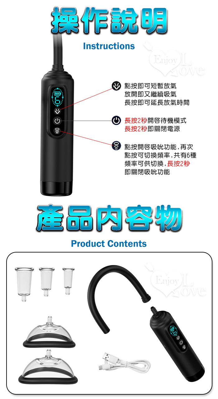 Hgod 波波吸 ‧ 撩乳弄陰口交全套裝組﹝6變頻真空強吸吮+液晶數碼顯示+大小5配件+USB充電﹞*亞馬遜上市款*