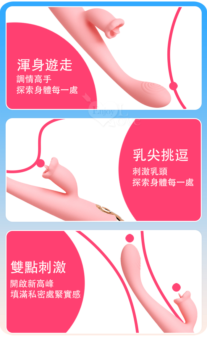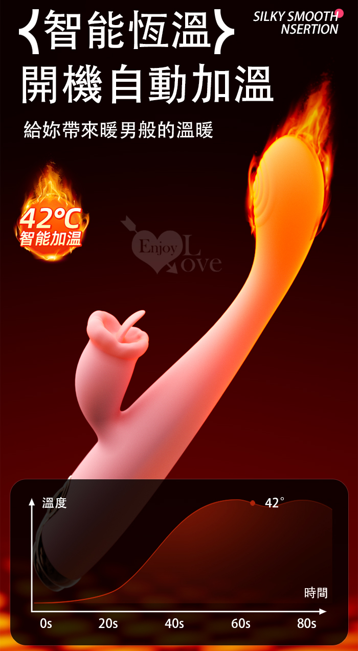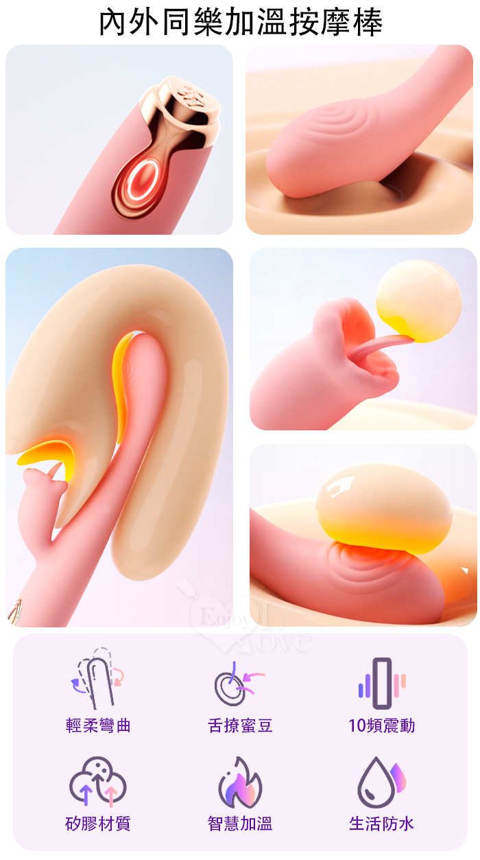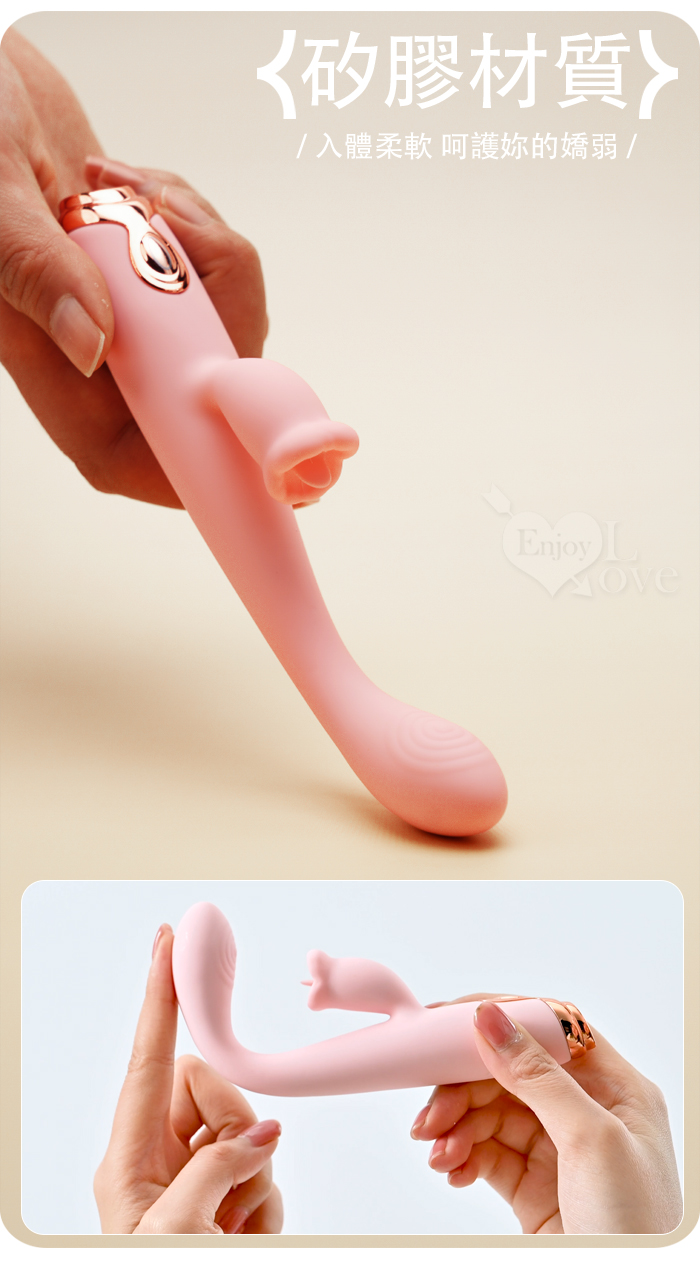 ROSELEX 勞樂斯 ‧ 潮戲 人體工學內外同樂加溫按摩棒﹝舌撩刺激+舒適矽膠+USB充電﹞