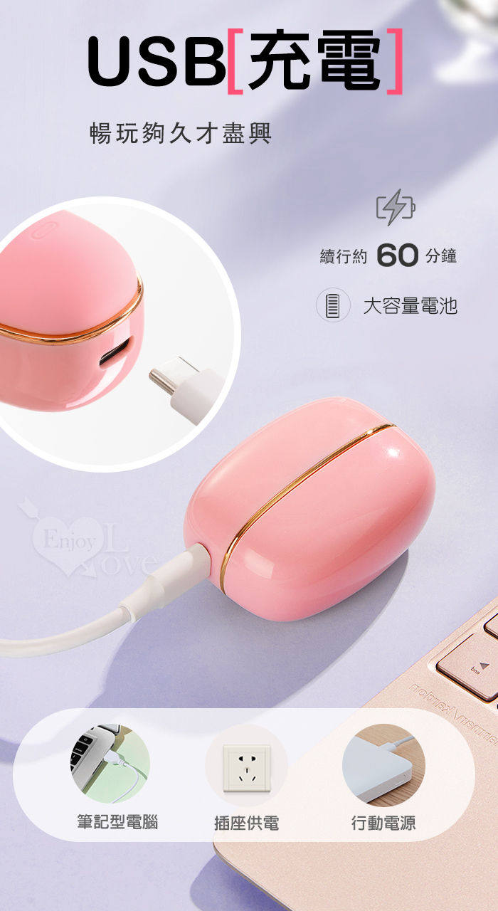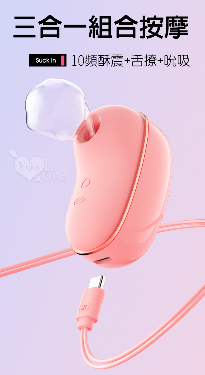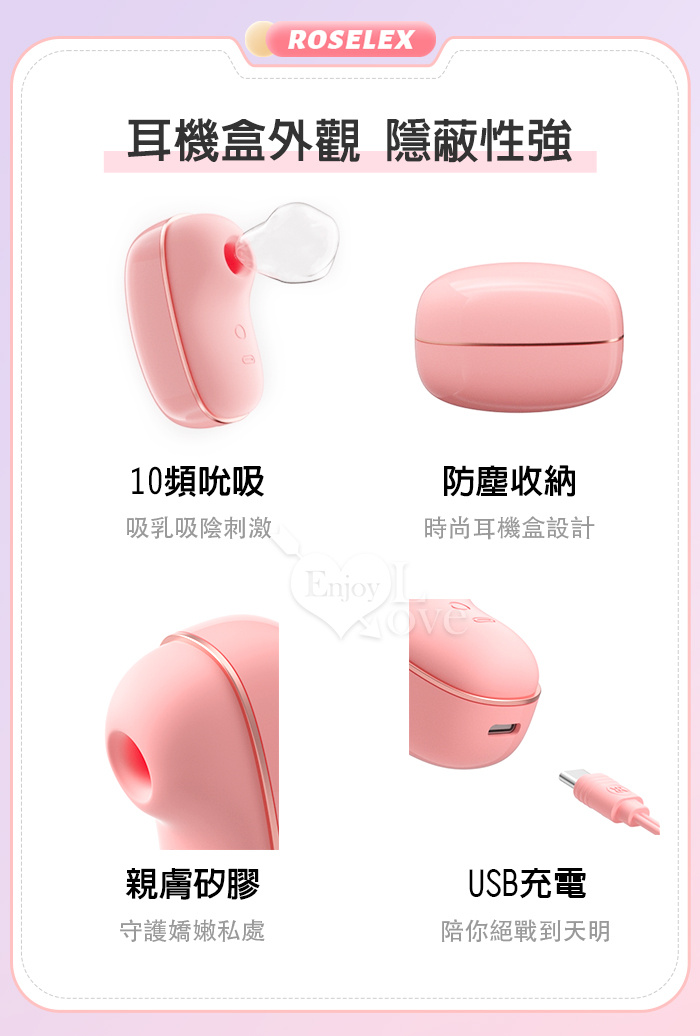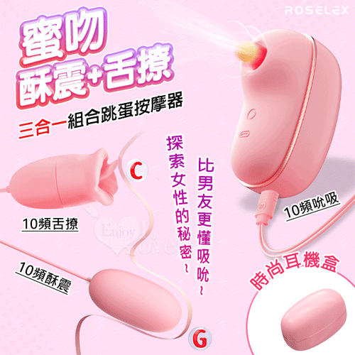 ROSELEX 勞樂斯 ‧ 蜜吻圓舔款~10頻酥震+舌撩+吮吸三合一組合按摩器﹝時尚耳機盒+USB充電﹞粉