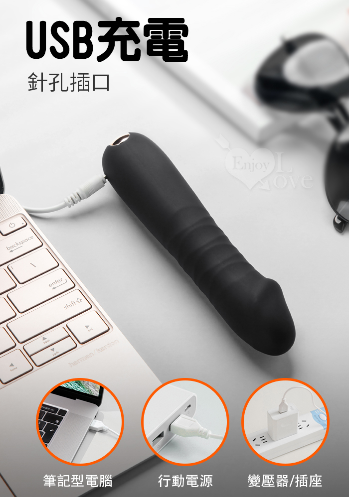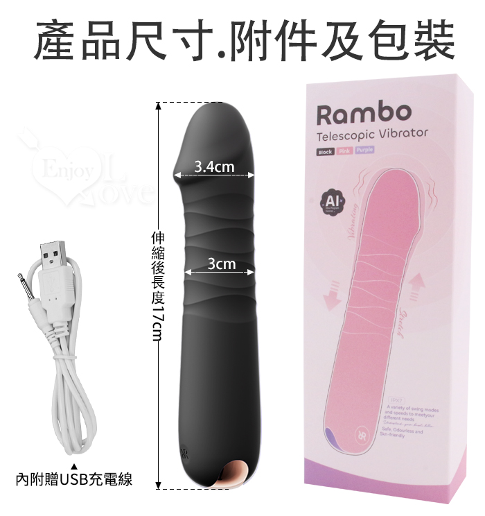 ROSELEX 勞樂斯 ‧ 蘭博 10變頻伸縮頂撞震動老二按摩棒﹝爽滑入體+螺紋摩擦+USB充電﹞黑色