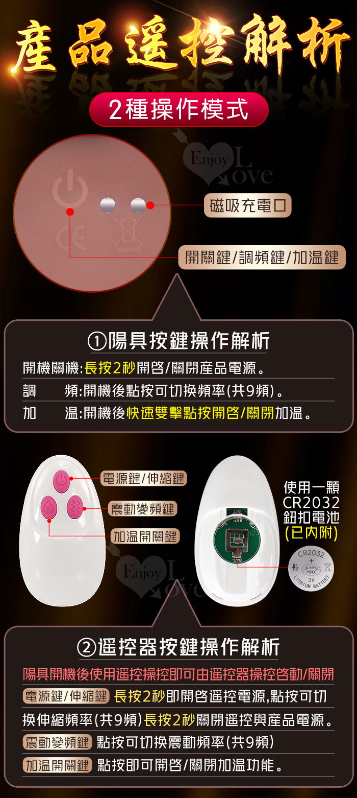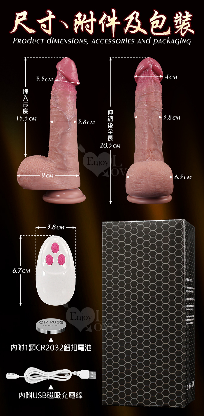ROSELEX 勞樂斯 ‧ 亞當 9X9頻伸縮+震動 高仿真液態矽膠肉感逼真老二棒﹝無線遙控+智能恆溫+吸盤+磁吸充電﹞