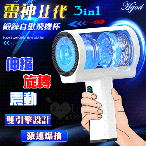 ►您現在的位置:首頁>Hgod 雷神Ⅱ代 ‧ 3IN1雙引擎激速爆抽 全自動智能5X伸縮+旋轉+震動鍛鍊自慰飛機杯-白色 *亞馬遜上市款*