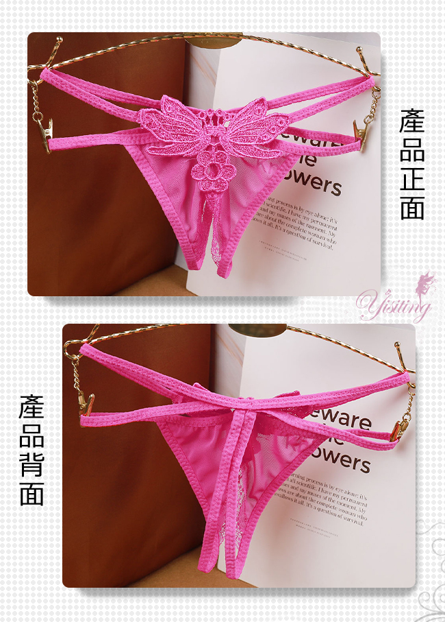 ►您現在的位置:首頁>迷情綻放!雙彈力帶蝴蝶刺繡誘人露臀開襠丁字褲﹝玫紅﹞