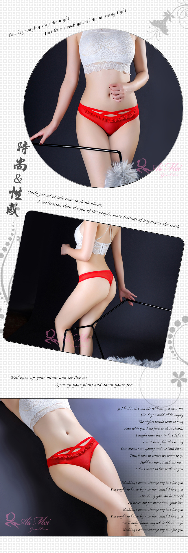 ►您現在的位置:首頁>溫柔暗號!前交叉細帶滾邊蕾絲網紗中腰T字褲﹝紅﹞