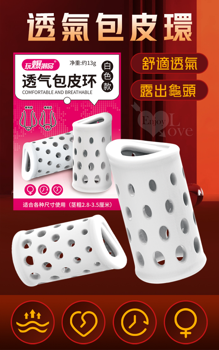 玩爆潮品 ‧ 透氣包皮阻復套環-兩只裝~長短各一﹝舒適透氣/露出gui頭﹞
