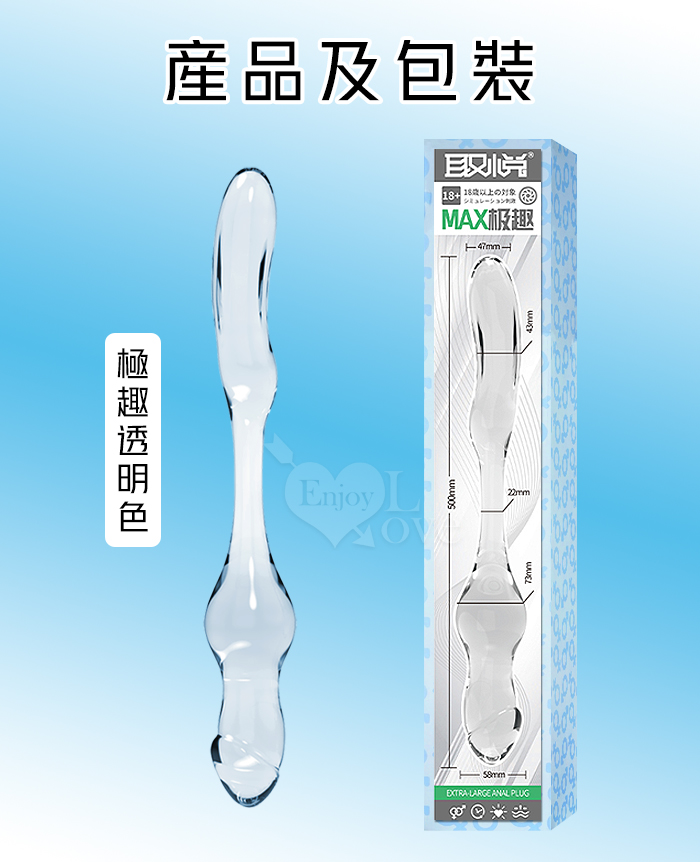 取悅 ‧ MAX極趣!XXL巨大型雙頭水晶按摩棒-前陰後庭/男女皆適用﹝透明色﹞
