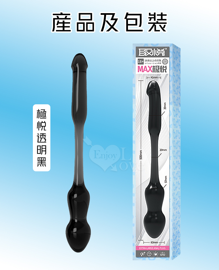 取悅 ‧ MAX極悅!XL巨大型雙頭共用水晶按摩棒-前陰後庭/男女皆適用﹝透明黑﹞