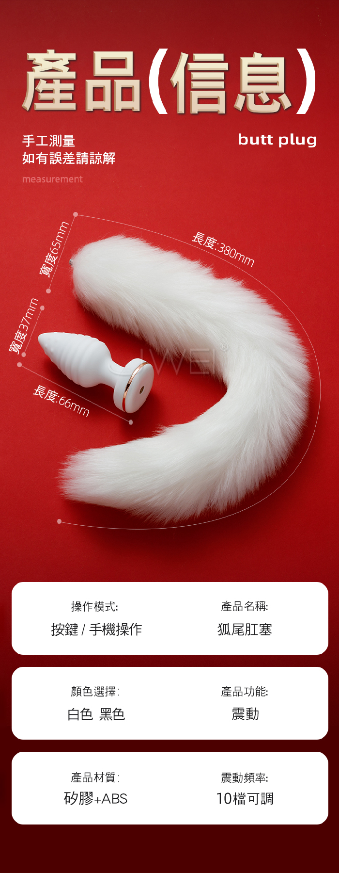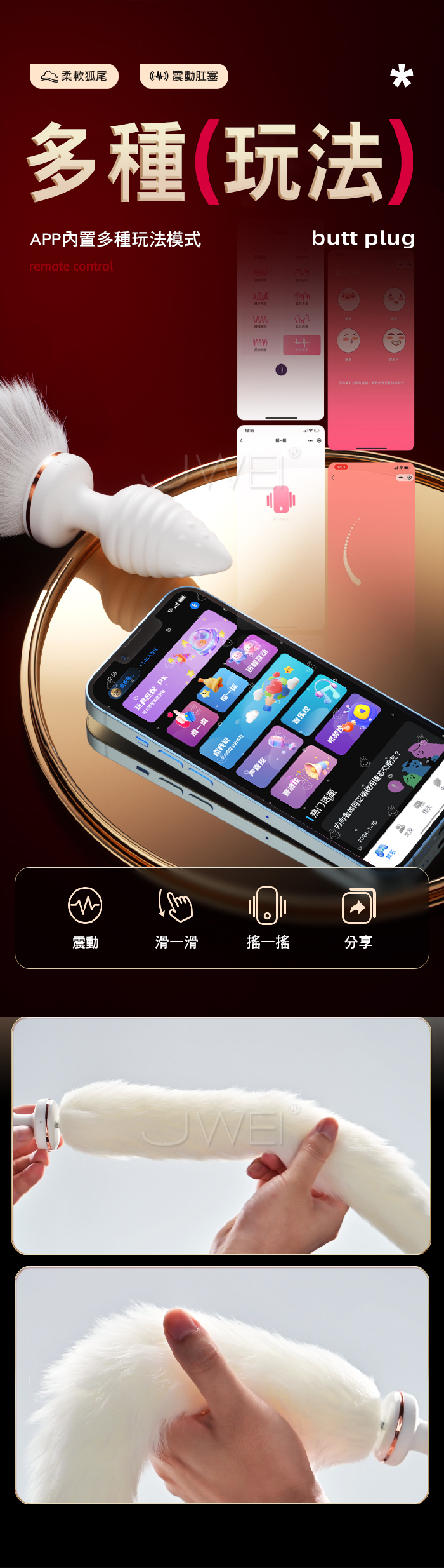 百變狐娘.10頻穿透強震 APP智控調教 震動狐尾後庭肛塞