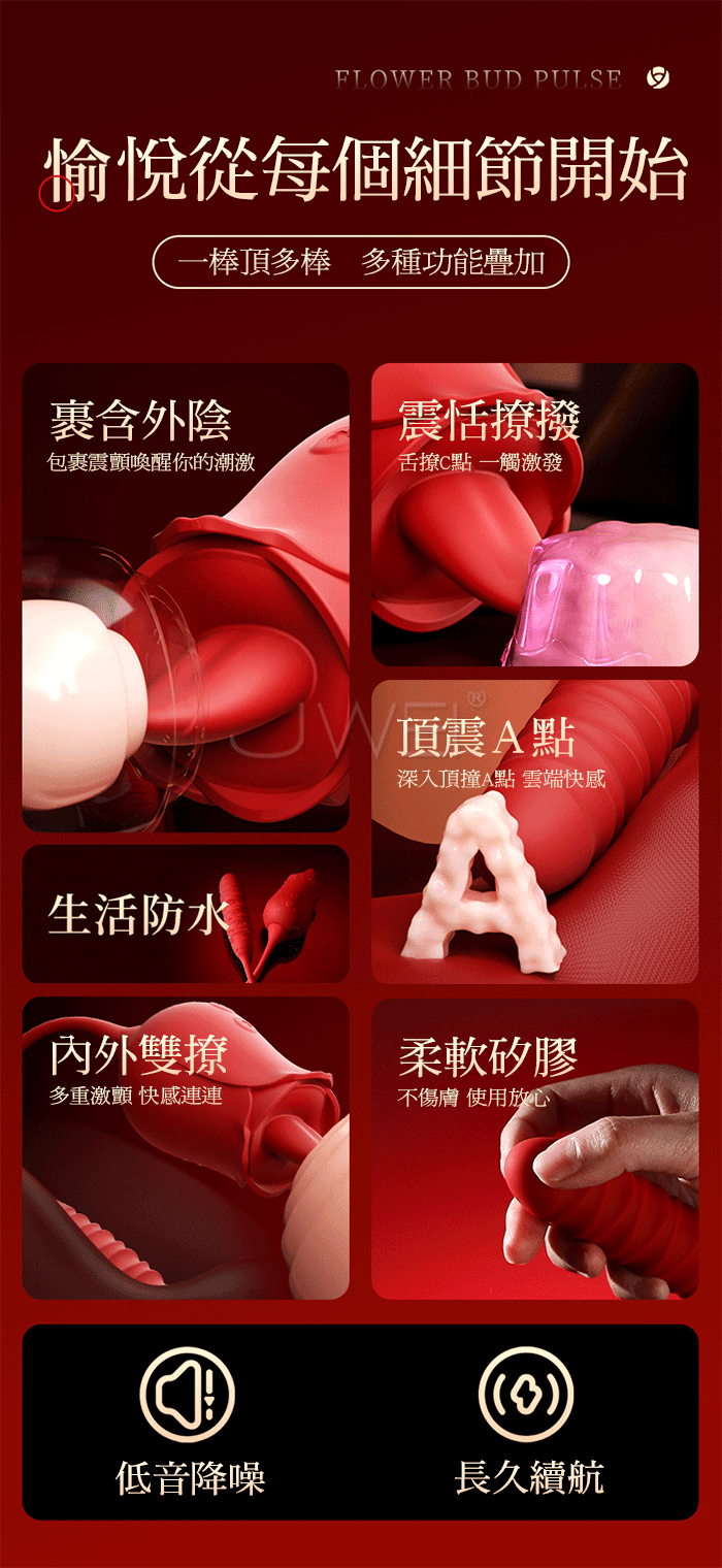 花蕾.10x10頻舔+插+震 軟舌撩G磁懸浮脈衝頂撞震動器