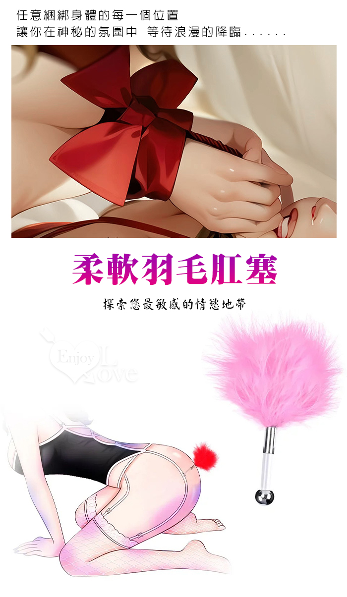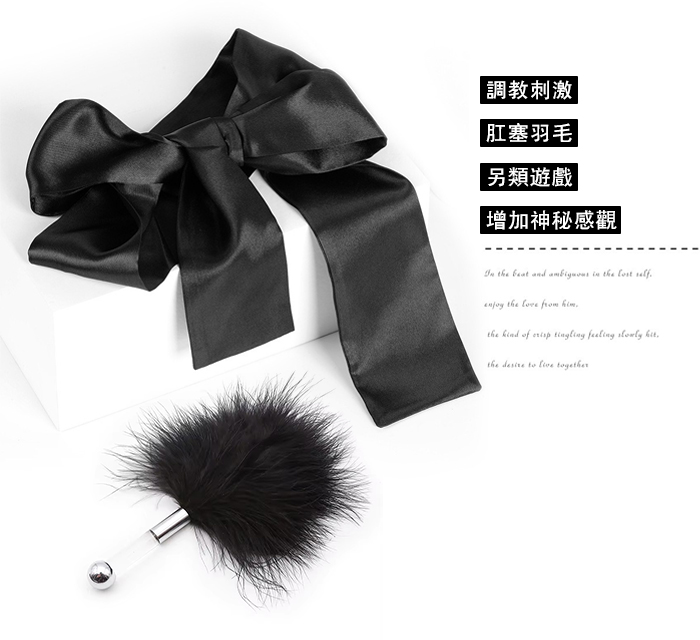 色丁布蒙眼罩+肛塞羽毛套装﹝挑逗+裝扮刺激﹞粉紅色