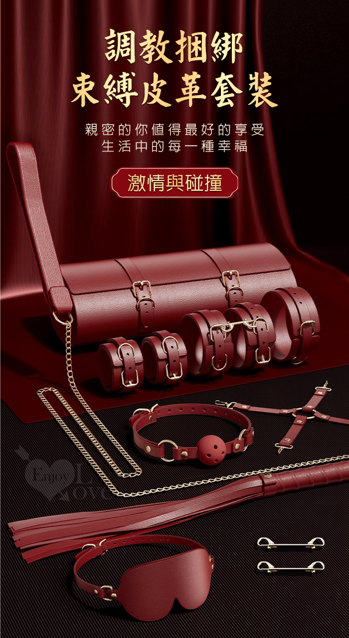 SM情趣道具 ‧ 調教捆綁束縛皮革七件套~時尚包包/方便收納/成人性愛玩具﹝酒紅色﹞