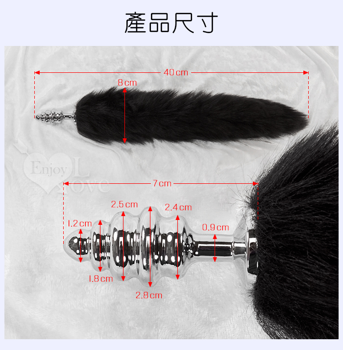 Sporting激性扮演遊戲 ‧ 人造毛尾巴+不銹鋼螺旋頭後庭肛塞 - 黑﹝可組裝拆卸﹞
