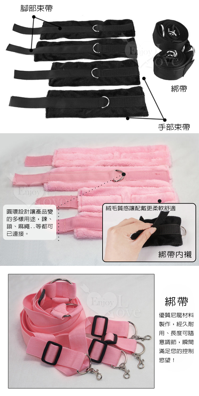 另類情趣/全方位睡床綁帶組﹝毛絨版-黑﹞
