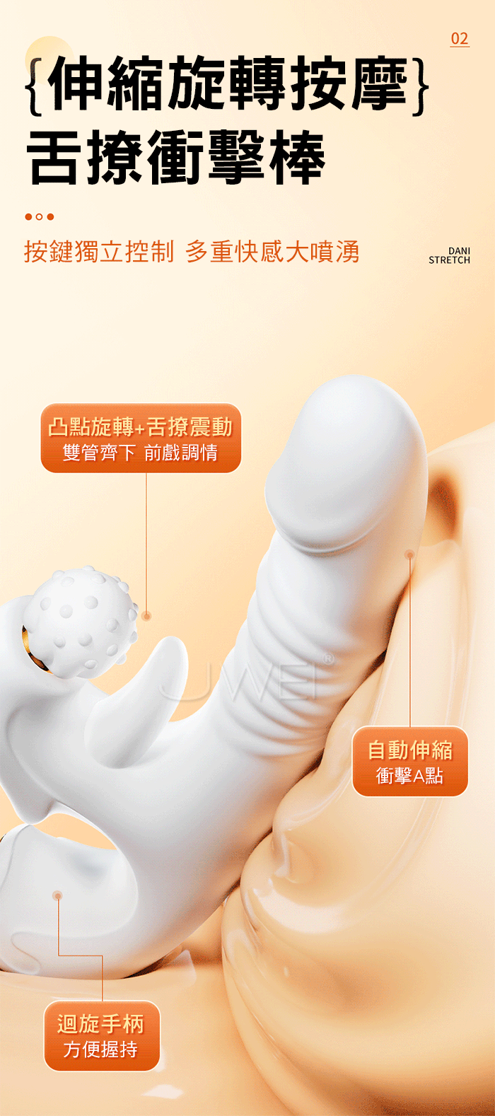 丹妮.8段凸點旋轉揉豆長舌撩震+8段伸縮觸頂多功能智能加溫按摩棒