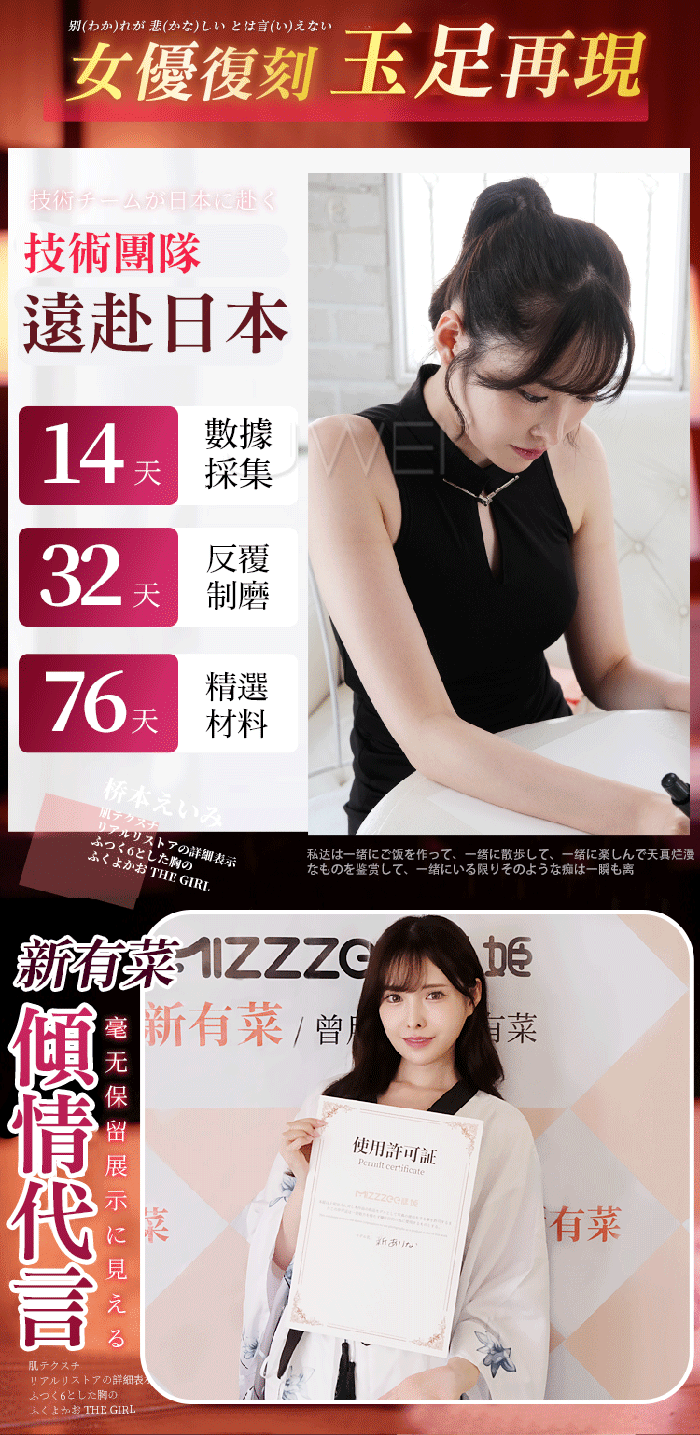 謎姬 MizzZee.橋本有菜 玉足.真美足 1:1仿真尺寸 青筋皮紋細節復刻 逼真陰部內置龍骨 雙色單穴自慰套【左腳】