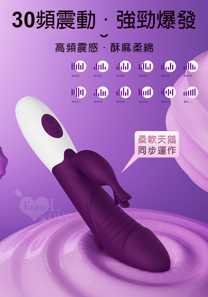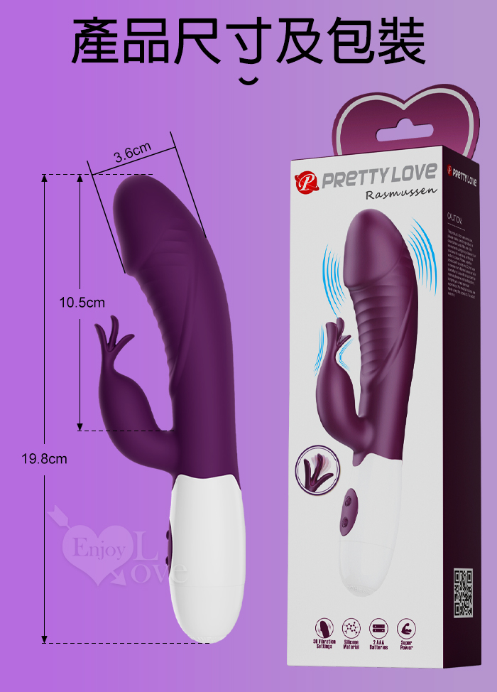 PRETTY LOVE 派蒂菈 ‧ 飛天鵝 雙重強震 內外同享30頻老二頭按摩棒-深紫 Rasmussen
