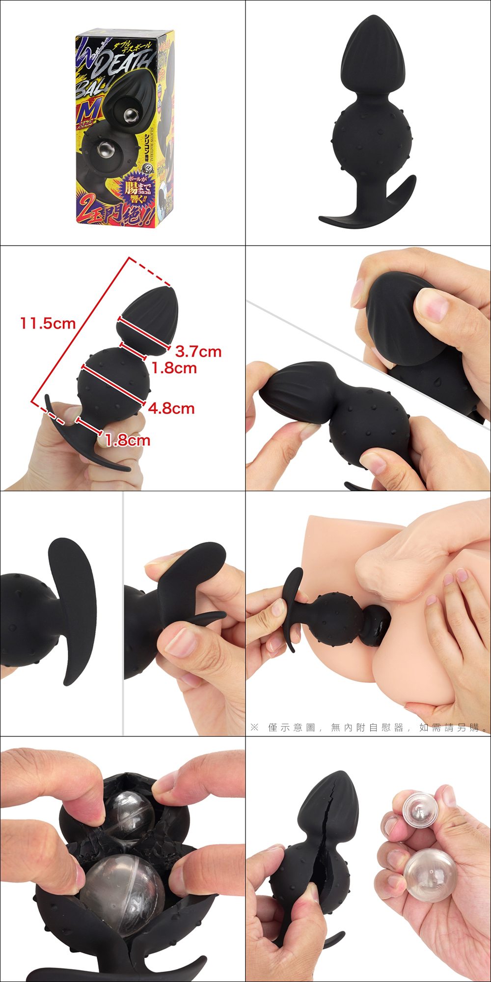 .內建可動球的矽膠肛塞