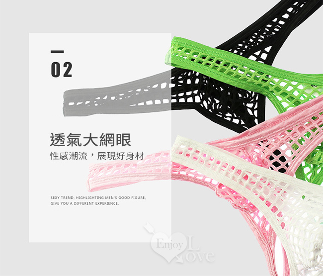 《 Enjoy Love 》性感半透大網孔男士丁字褲 - 粉﹝M﹞