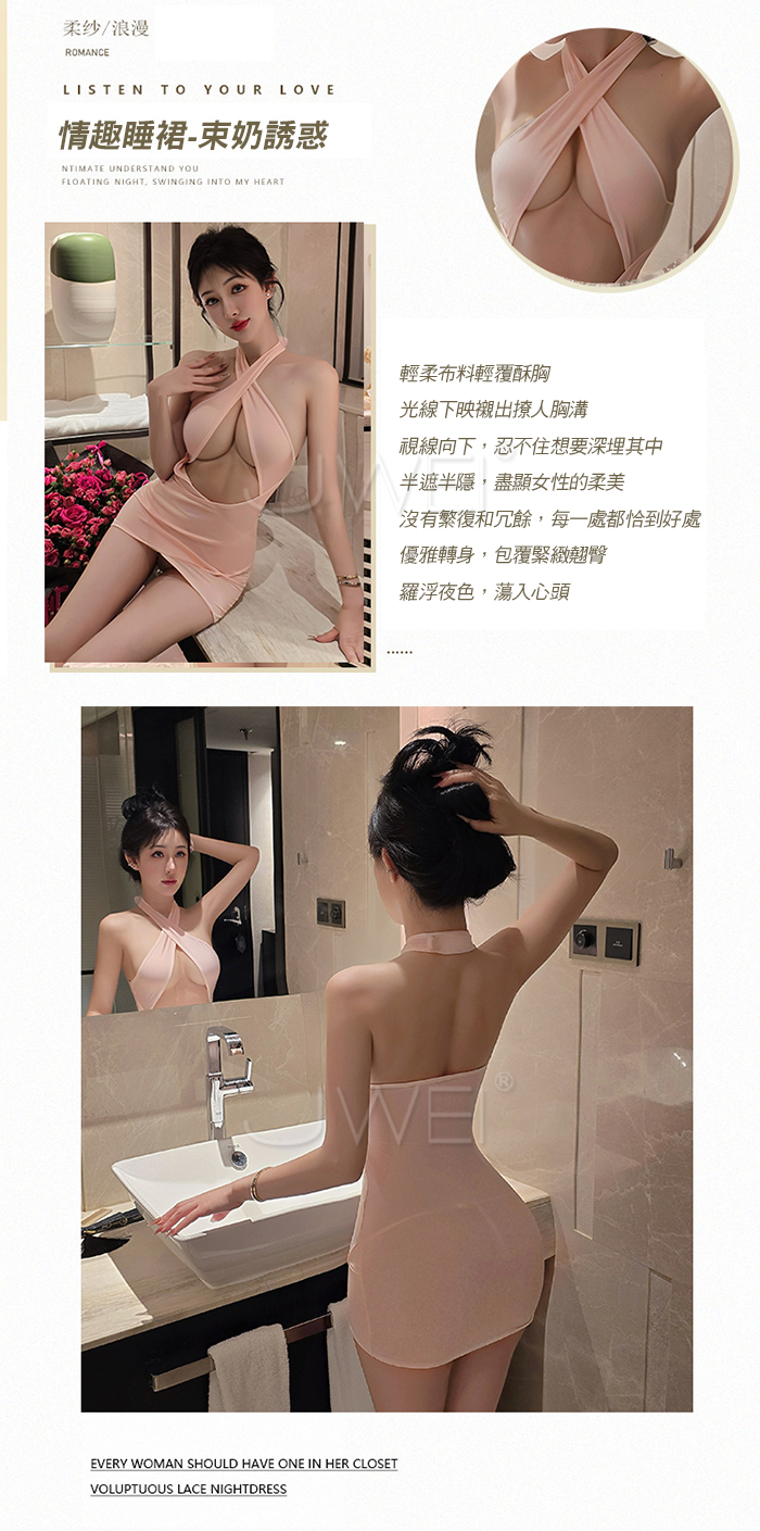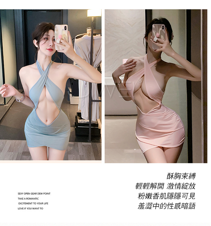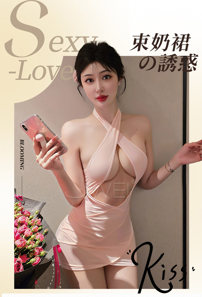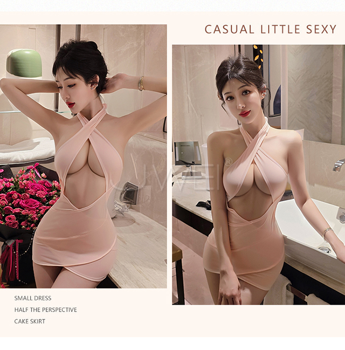 | 夜色小秘.性感秘書誘惑嫵媚交叉露胸美背約會戰袍【粉色】