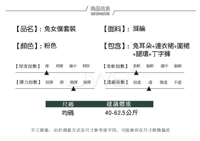 ■內容物:兔耳朵+連衣裙+圍裙+腿環+丁字褲