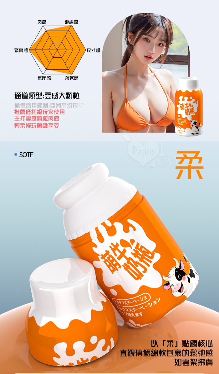 萌牛奶瓶 ‧ 云感大顆粒覆蓋肉感自慰器﹝初階輕柔慢玩款-橙色﹞