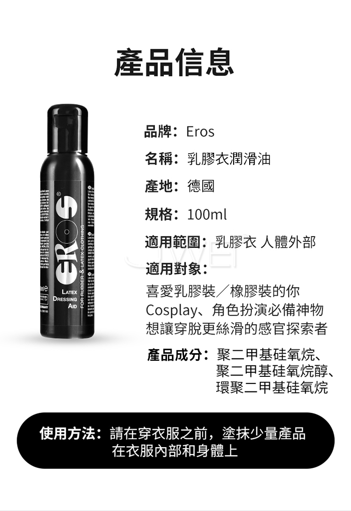 德國Eros.Latex Dressing Aid 乳膠衣專用 光亮保養潤滑油 100ml