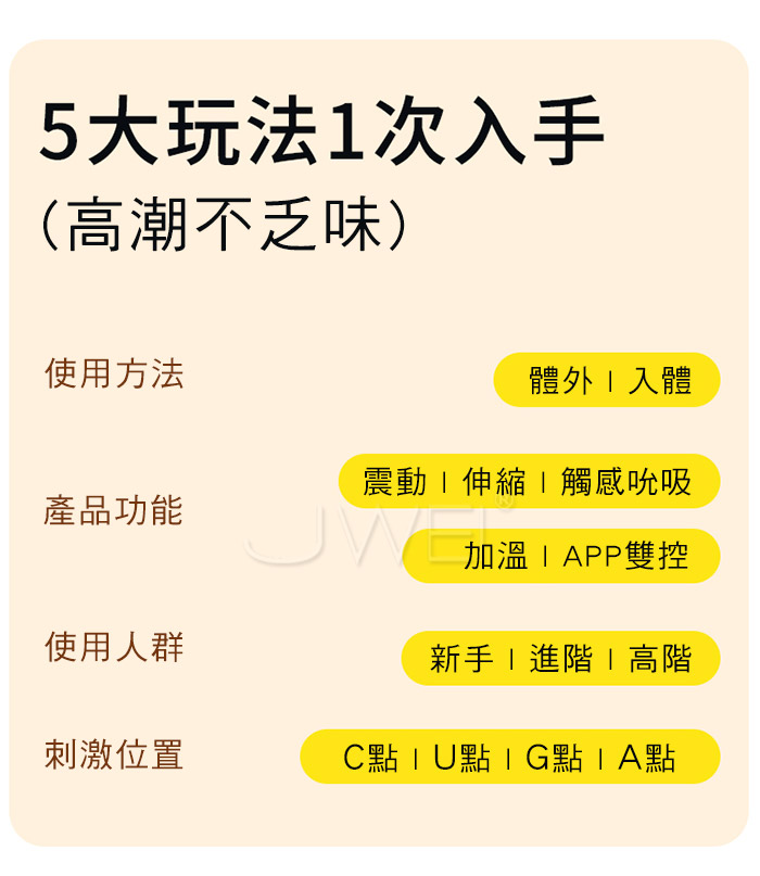 ■功能: 10頻震動、10頻吮吸、10頻伸縮、APP智控、加溫